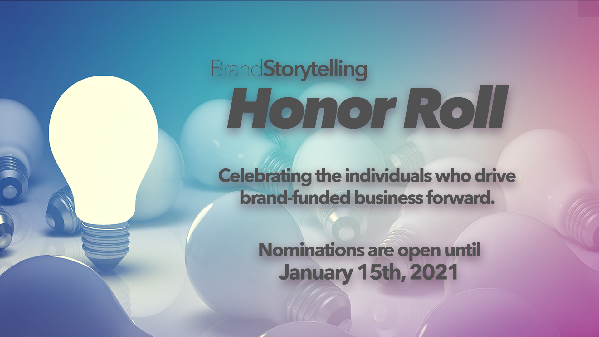 Nominations are being accepted now at no cost through 1/15/21. It is quick and easy to nominate anyone that is employed by a brand organization and has played an integral role in the development and production of content for their brand.